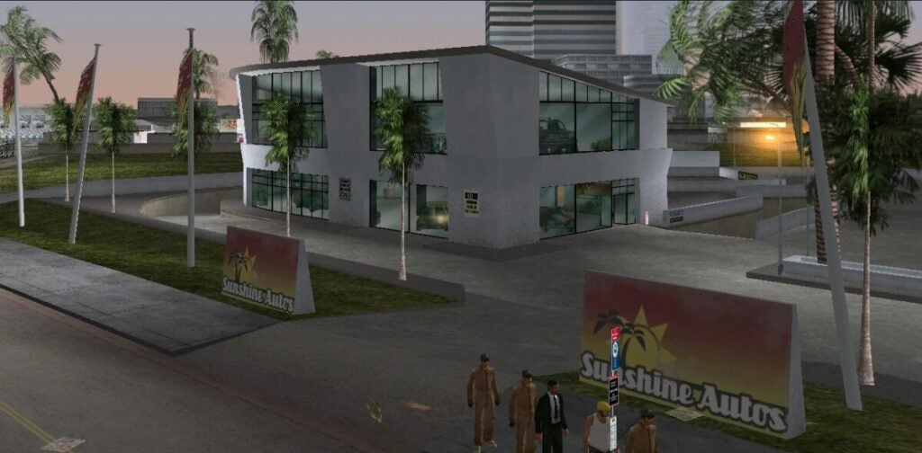 Quizás Sunshine Autos consiguió prosperar. Quizás ahora haya un Sunshine Autos en cada zona, en espectaculares edificios de dos plantas, muy llamativos, con alguna clase de mascota ridícula. Eso sería perfecto. Una tienda de exhibición de coches que se utilizaba para vender coches robados podría prosperar a lo largo de las décadas hasta convertirse en una cadena legítima, conocida por todos en la región de Vice City. A fin de cuentas, no es como si el negocio del tráfico de coche robados fuera a decaer nunca.