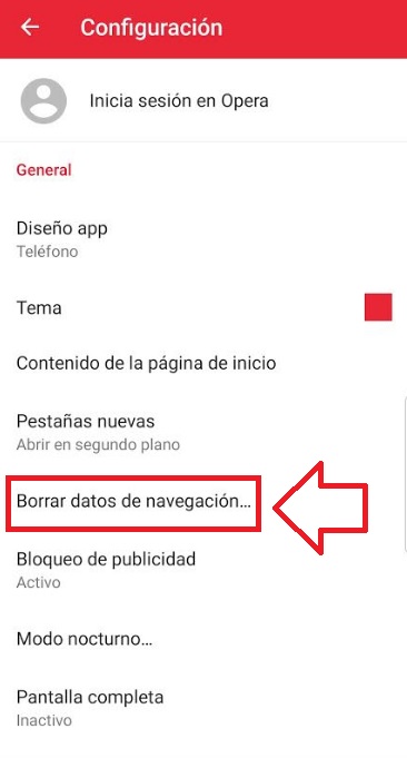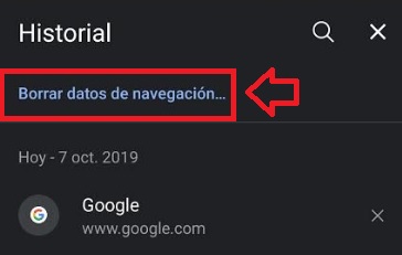 Ya en la pantalla de configuración del navegador, pulsa en la opción “Borrar datos de navegación…”.