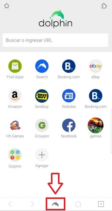 Ya con Dolphin actualizado, abre tu navegador y pulsa en el icono con el logotipo del delfín que encontrarás en la parte inferior de la pantalla.