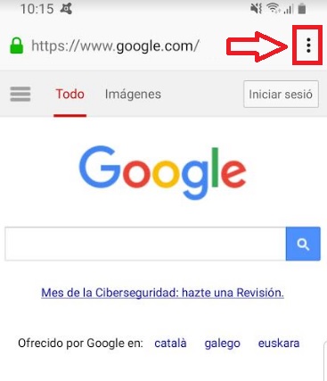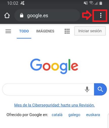 En primer lugar abre Chrome y pulsa en el icono de menú (es la opción de los tres puntos verticales de la esquina superior derecha de la pantalla).
