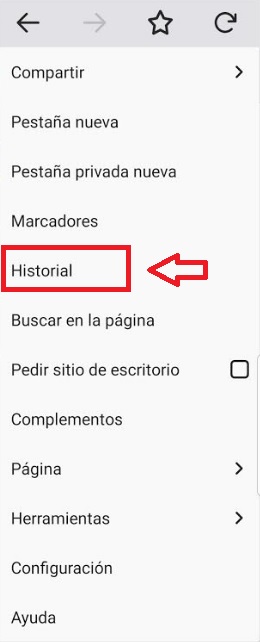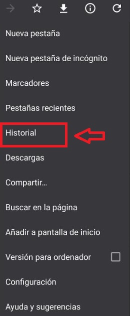 Tras ello se abrirá un menú desplegable donde debes pulsar en la opción “Historial”.