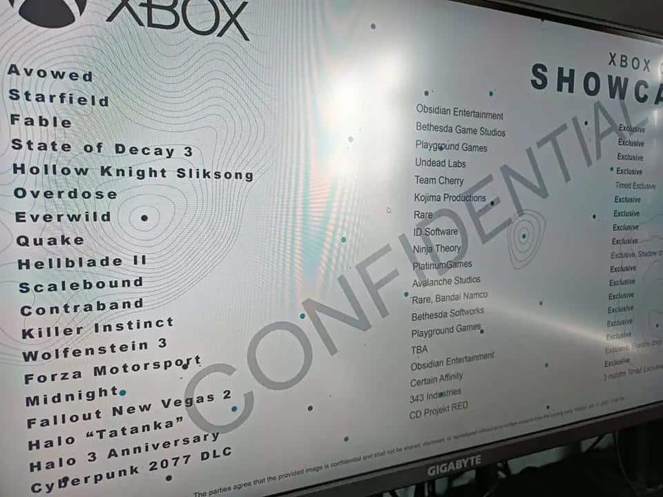 El nombre de la conferencia centrado arriba del todo y los logos de todos los juegos, con una amplia variedad de títulos que no son sólo exclusivos de Microsoft y no sólo títulos de perfil alto puede hacernos pensar que esto sale directamente de una captura del show en sí. De todos modos, hay demasiadas cosas que no encajan. Para empezar, a los falsos leakers les encantan hacer fotos desenfocadas como si estuvieran invitados al programa de Iker Jimenez a hablar sobre abducciones alienígenas o su encuentro con un fantasma en la deep web. Por otro lado, ese es el logo original de Jet Set Radio, el juego de Dreamcast lanzado en el año 2000. Incluso si fuera un remaster o un remake, no suena creíble que utilizaran el mismo logo haciendo copypaste 23 años después — esperamos de SEGA que mime sus franquicias más que eso.