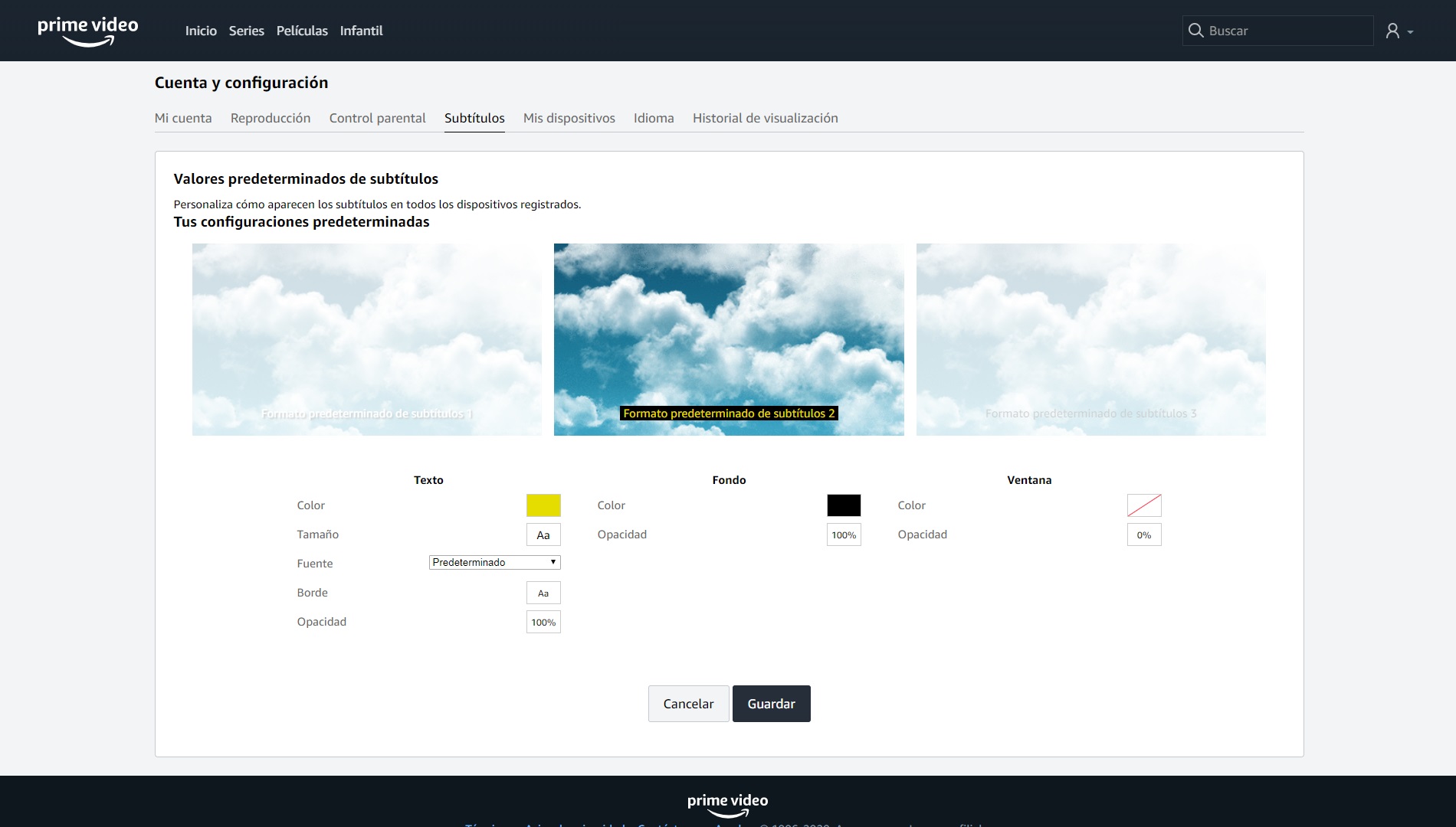 Al igual que ocurre con Netflix, Amazon tiene en consideración a todos aquellos que tenemos problemas de visión –gracias, menos mal-. Por ello, desde la configuración permite cambiar los ajustes predeterminados de subtítulos que hay.
