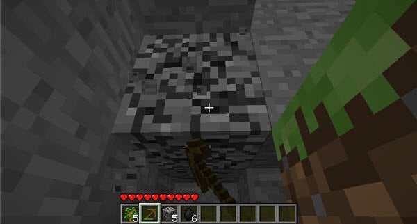 Ce sont les pierres aux petites tâches noires, mises en évidence sur la capture d’écran ci-dessous. Pour passer la nuit au chaud, il vous faut choisir un abri. Le creuser à flanc de montagne vous permet de gagner un temps précieux.