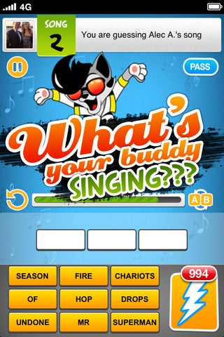 Just Sing It permet de faire partager votre expérience du karaoké. Choisissez une chanson (vous pouvez sélectionner le genre et la difficulté de la chanson) et cherchez un adversaire parmi les utilisateurs de l’application. Chantez alors de votre plus belle voix afin de faire découvrir à votre partenaire le titre de la chanson. En cas de bonne réponse, le chanteur et l’auditeur gagnent des pièces virtuelles qui peuvent être utilisées pour débloquer du contenu supplémentaire. Vous pouvez également acheter des pièces virtuelles via des micro-paiements.