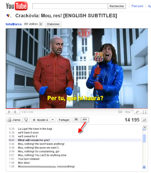 Ces sous-titres présentent un autre avantage, celui de vous aider à naviguer dans la vidéo. Un clic sur la ligne de texte de votre choix vous amène au moment de la vidéo où ces paroles sont prononcées.
