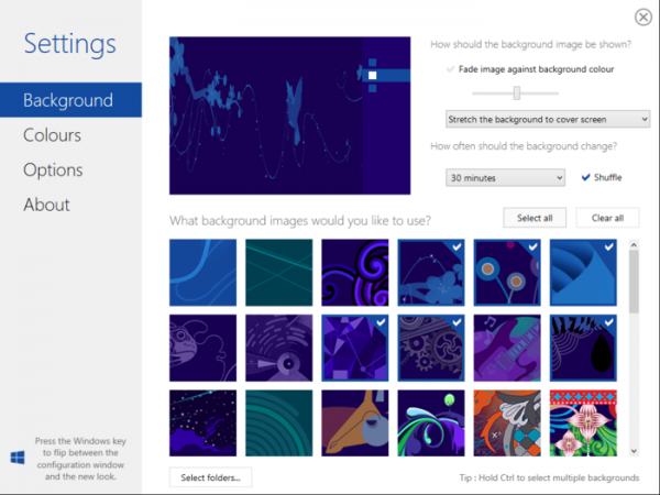 Decor8 est l’application idéale pour palier au manquer de personnalisation de Windows 8. Avec elle, vous allez pouvoir ajouter l’image de votre choix pour qu’elle apparaisse en fond d’écran mais aussi créer des diaporamas et avoir une rotation de plusieurs images en fond d’écran.
