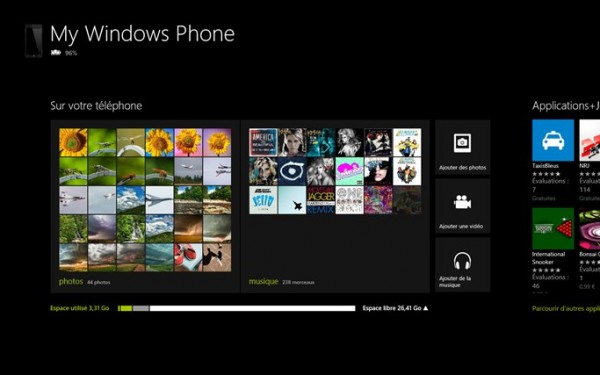 L’application Windows Phone permet d’échanger facilement le contenu d’un smartphone sous WP8 avec un PC ou une tablette. Musique, vidéos, documents, applications… Windows Phone pour Windows 8 synchronise tout!