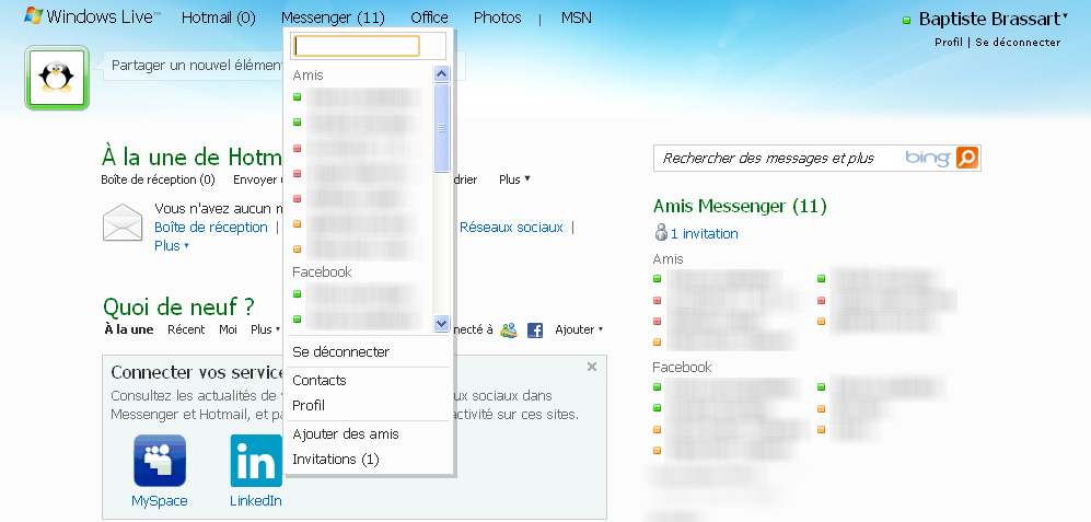 Windows Live Hotmail évolue et s’adapte à l’air du temps. Finie l’installation de Windows Live Messenger sur votre Bureau: le service de messagerie instantanée est directement accessible depuis votre navigateur. Facebook, MySpace, Blogger, LinkedIn: Microsoft Live intègre aussi un grand nombre de services. Aucune installation n’est nécessaire, tout se passe dans votre navigateur favori ou plus exactement sur votre compte Windows Live.