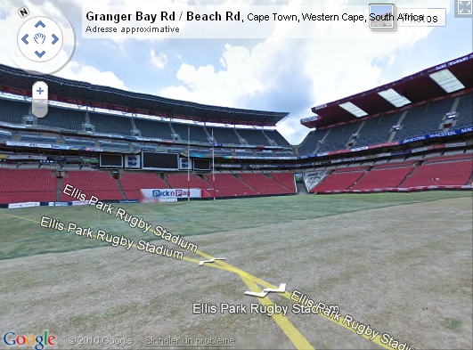 Google Street View propose désormais une catégorie “South Africa Soccer Stadiums” sur sa page dédiée à des galeries de lieux illustres. Aux côté des plages d’Hawaï, des pistes de ski de Whistler ou des grands monuments de ce monde, vous pouvez désormais circuler autour mais aussi à l’intérieur des 10 stades retenus pour la Coupe du Monde en Afrique du Sud!