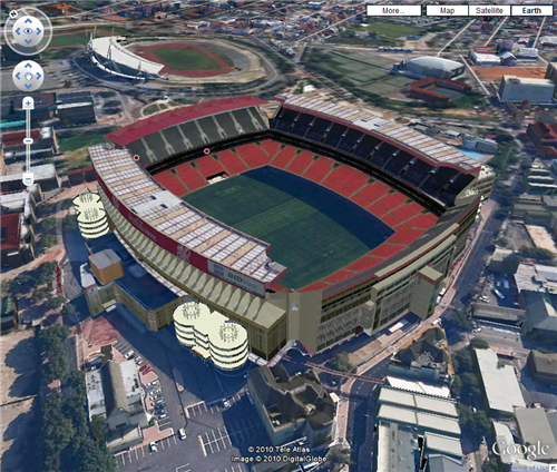 Outre le joli petit “easter egg” dont nous vous parlions lundi, la Coupe du Monde 2010 a posé son empreinte sur Google Earth, Google Maps et Google Street View. En route pour l’Afrique du Sud!