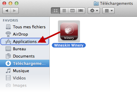 Pour commencer à utiliser Wineskin Winery, rendez-vous sur sa page de téléchargement. Une fois l’archive téléchargée, la placer dans l’onglet Applications.