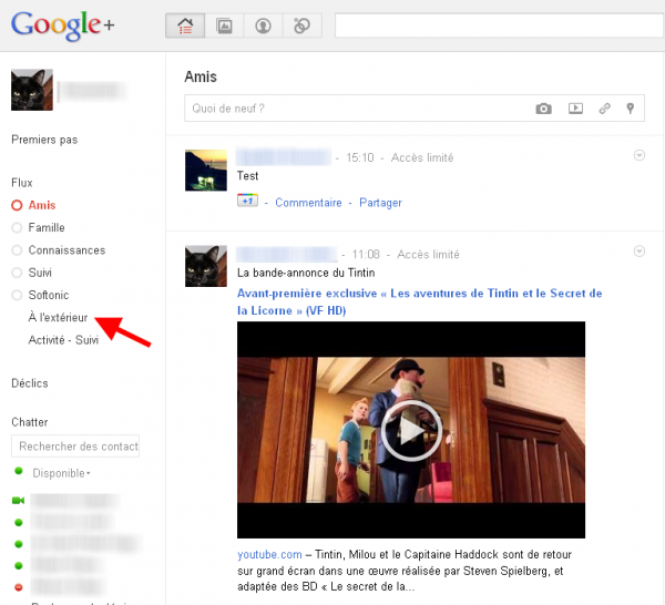 S’ils n’appartiennent à aucun de vos cercles, ces utilisateurs apparaissent dans la section “A l’extérieur”, accessible sur la page d’accueil de Google+, dans la colonne de gauche.