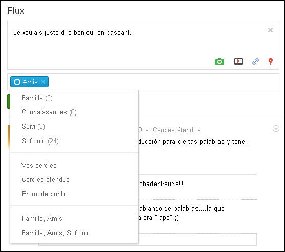 Si après l’avoir posté, je m’aperçois que je l’ai partagé avec le ou les cercles inappropriés, pas de panique! Il est toujours temps de changer en cliquant sur la petite flèche en haut à droite du post en question.
