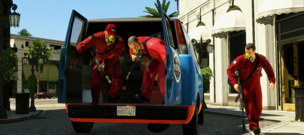 Tandis que Tommy raconte ce qu’il veut faire de sa nouvelle vie modèle, on voit se dérouler sous nos yeux tant d’images de débauche qu’il ne peut, à nos yeux, qu’être ironique ou rattrapé par son passé tumultueux. Prostitution, ivresse sur la voie publique, braquage à main armée, vente de drogue, course poursuite avec la police (en voiture ou en hélico)… Tout y passe! A moins que Rockstar ait décidé de changer fondamentalement son titre phare en Les Sims à Los Angeles, GTA V sera violent.