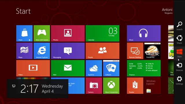 Dans notre 1ème tuile dynamique surprise se cache la “Charms Bar” de Windows 8. Elle va bouleverser vos habitudes. Indispensable pour passer du Bureau à la Nouvelle interface utilisateur, c’est également en passant par elle que vous pourrez rechercher applications, logiciels, documents et même paramètres.