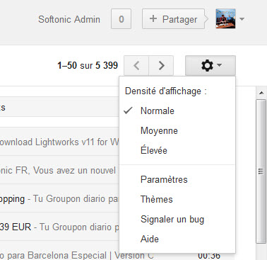 Ils sont simplement en haut à droite de l’interface principale, en cliquant sur le logo en forme de rouage. Ici, vous accédez à de nombreuses nouvelles possibilités qui permettent de paramétrer Gmail à votre convenance.