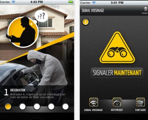 Un cambrioleur semble rôder près de chez vous ? Un intrus se trouve dans la propriété de votre voisin ? Alertez le quartier via l’application française VigiVoisin vendue sur l’Apple Store et Google Play.