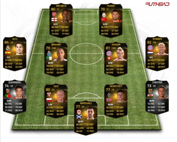 Cette semaine, l’équipe évolue dans un 4-4-2 classique avec en pointe l’attaquant anglais d’Arsenal Danny Welbeck et l’attaquant turc de Galatasaray Burak Yilmaz.