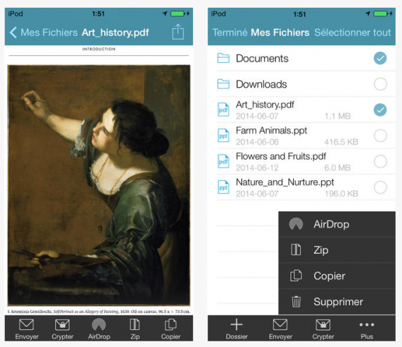 L’application peut également être utilisée pour télécharger des fichiers à partir du compte de stockage de l’utilisateur et les enregistrer sur l’iPhone ou l’iPad.