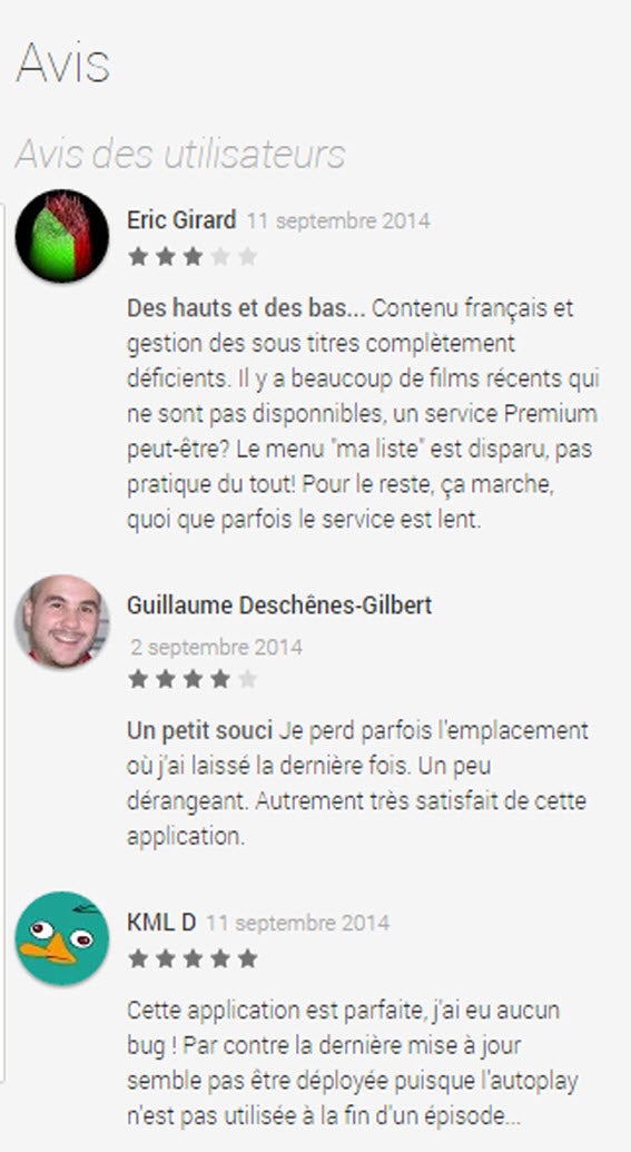 L’interface est claire, les vidéos disponibles possèdent désormais leurs descriptions en français. Les votes semblent être repris de ceux émis aux USA.