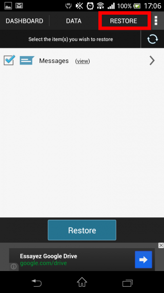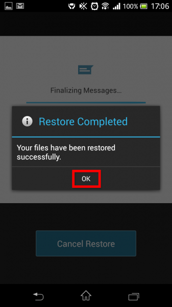 6. Cochez les cases en regard des données que vous souhaitez copier sur votre terminal puis cliquez sur le bouton Restore pour lancer la restauration. Patientez jusqu’à la fin de la restauration puis cliquez sur OK. Voilà, toutes vos données ont été restaurées!