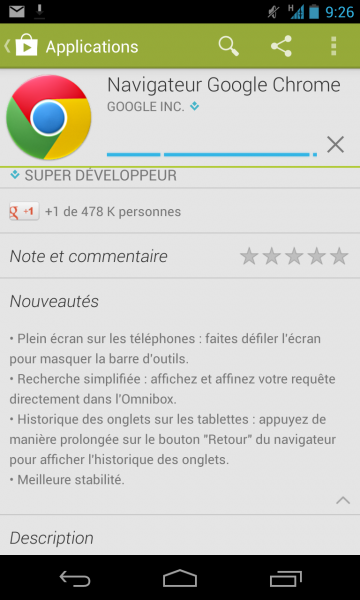 près la mise à jour de Chrome pour Android