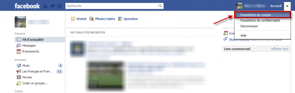 1 – Aller dans “Paramètres du compte” en haut à droite