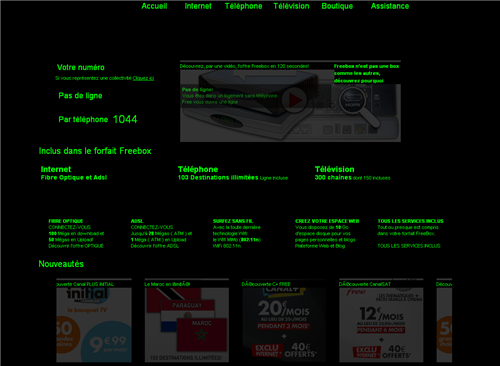 La homepage du site de Free, sous l’effet du code Konami, prend quant à elle des airs de Matrix. Le fond s’assombrit et la police de caractères devient verte.