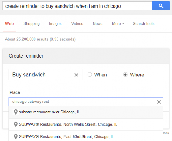 Imaginez que vous ouvriez la page d’accueil du moteur de recherche Google et tapiez “rappelle-moi d’acheter du lait demain” et le moteur de recherche crée automatiquement un rappel dans Google Now et l’envoie à votre téléphone.