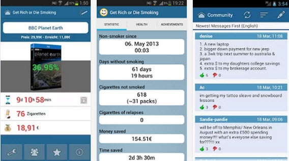 Tout en humour, en décontraction et en jeu, Get Rich or Die Smoking vous propose d’arrêter de dépenser autant d’argent pour nuire à votre santé. Au-delà du côté humoristique et décalé, l’appli se base sur une forte communauté pour vous convaincre d’économiser votre argent et devenir le riche maitre du monde.