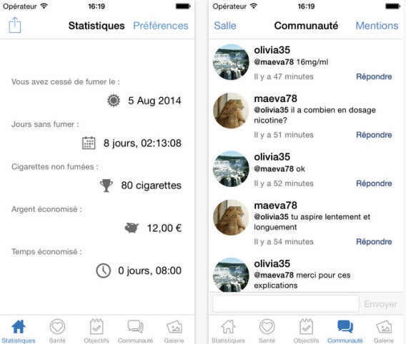 L’application se veut également sociale. Il est ainsi possible de partager des statuts sur vos réussites depuis l’App sur les réseaux sociaux. Il s’agit également de faire connaissance avec d’autres futurs ex-fumeurs. Ces derniers pourront d’ailleurs partager leurs astuces.