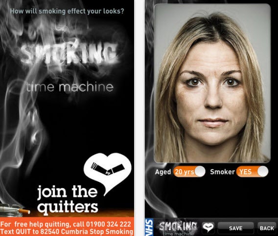 Vous fumez? Vous faites attention à votre physique? Cette application va terminer de vous convaincre d’arrêter tout de suite! Via un petit logiciel Smoking time machine vous permet de modifier votre photo et vous projette 10 ou 20 ans dans le futur. Et là, c’est généralement le drame.