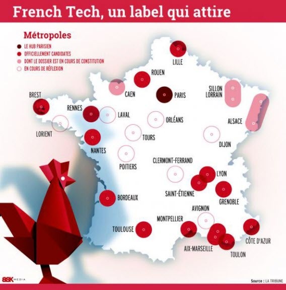 Axelle Lemaire, secrétaire d’État au Numérique, a dévoilé les 9 villes ayant obtenu le label French Tech. Il s’agit de Lille, Lyon, Grenoble, Aix-Marseille, Montpellier, Toulouse, Bordeaux, Nantes et Rennes. Il met à l’honneur les écosystèmes de start-up les plus dynamiques et les plus prometteurs en région.