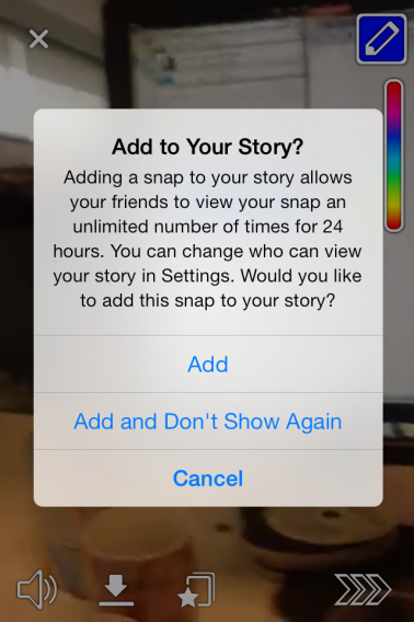 7. Cliquez sur le chronomètre en bas à gauche pour définir combien de temps votre ami pourra consulter le média. Vous pouvez aussi enregistrer l’image dans votre Galerie de photos.