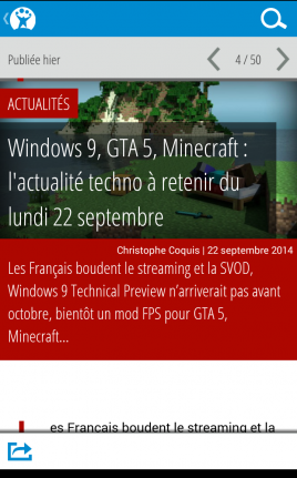 Le problème de Windows Phone est que, souvent, le symbole est caché dans les options de l’application. Dans ces cas-là, vous devez d’abord appuyer sur les trois petits points du menu, examiner le menu et trouver l’icône ou la fonction de partage, comme dans l’application de Bing News.