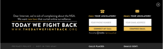 En plus de cette initiative, le projet mondial The Day We Fight Back (le jour où nous contre-attaquons) a lieu. Le site invite les lecteurs aux États-Unis à appeler et interpeller leurs membres du Congrès. Les internautes dans le monde entier sont invités à la même démarche et à partager l’information sur les réseaux sociaux.