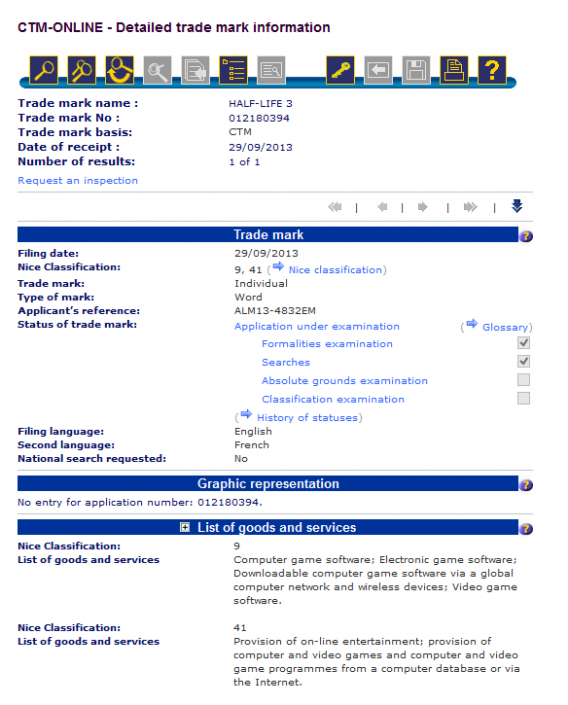 Half-Life 3 fait son retour. Valve, le développeur et créateur de Steam, a enregistré la marque “Half-Life 3”  la semaine dernière en Europe. Les documents mentionnent explicitement le titre du jeu et classent le produit comme un jeu PC. En outre, certains fans ont trouvé le logo de la franchise dans un autre dépôt, cette fois datée de juillet 2013.