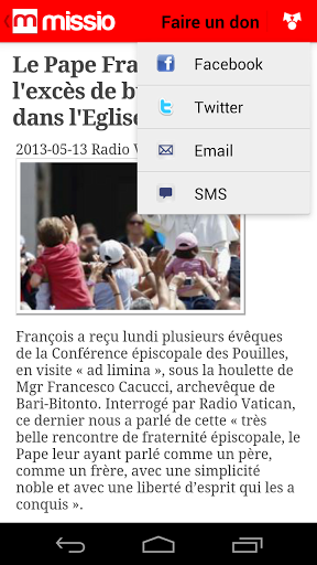 ‘est la semaine passée que le pape François a lancé l’application du Vatican sur iOS (iPhone, iPad et iPod touch) et Android. Baptisé “Missio“, l’appli est gratuite et reprend les dépêches de l’agence