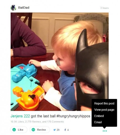 Les courtes vidéos se jouent automatiquement. Les internautes peuvent aimer, reviner, tweeter, commenter ou partager les vidéos sur Facebook. Il y a aussi un menu élargi avec des options pour reporter la vidéo, obtenir un code d’intégration, envoyer un e-mail…