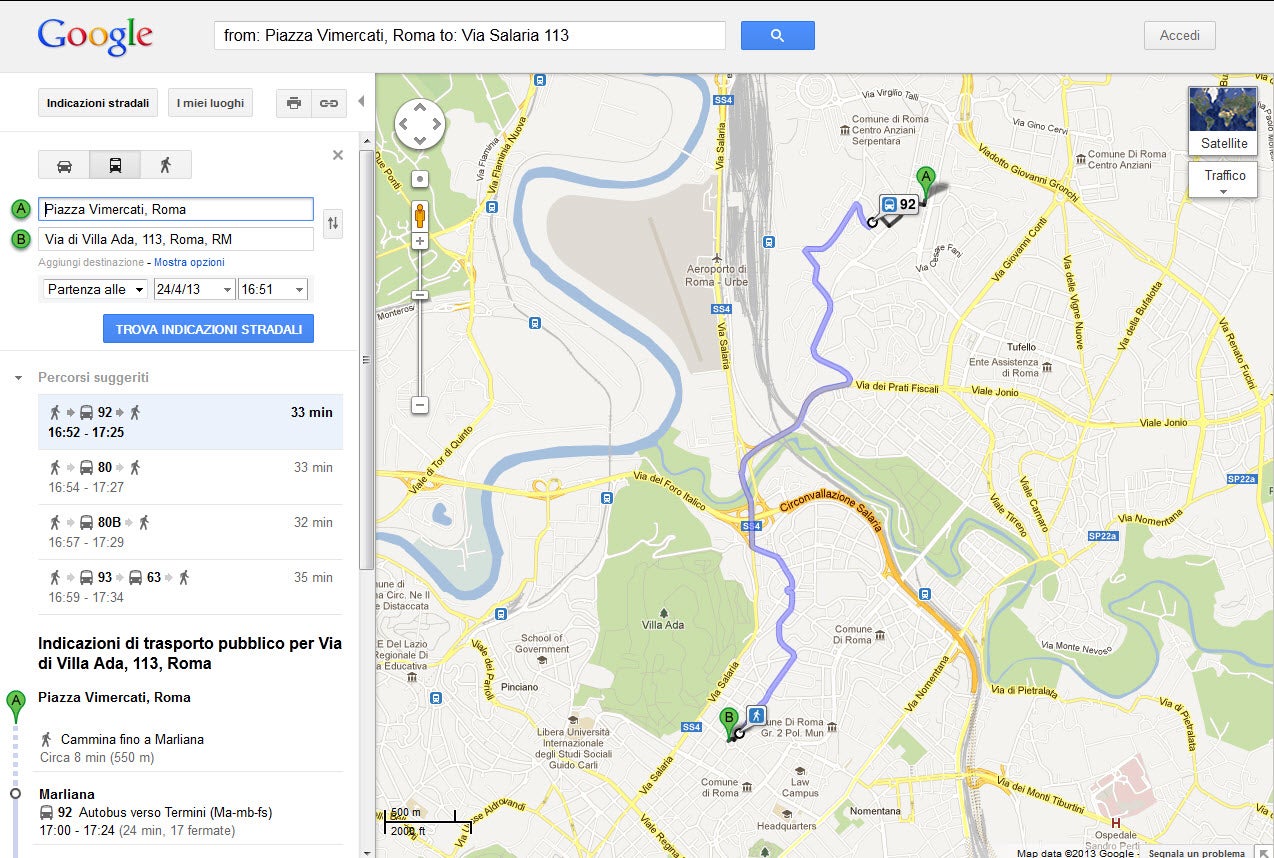 Grazie a Google Transit, infatti, saprai esattamente come arrivare da Piazza Vimercati a Villa Ada, per esempio, quale mezzo prendere e a che ora. Una conquista, insomma, di cui per il momento potranno godere però solo gli abitanti capitolini e i turisti in visita alla città.