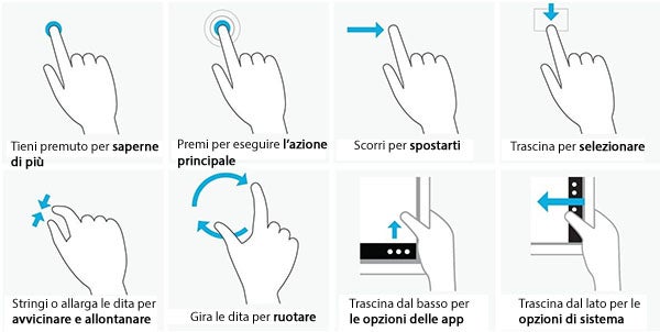 I comandi touch per Windows 8