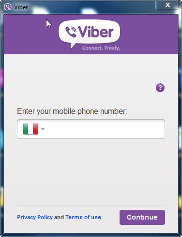 Per poter accedere a Viber occorre registrarsi con un numero di telefono. Questo significa che se non possiedi un cellulare non potrai usare il servizio, nemmeno su PC. Inserendo il tuo numero di telefono quando ti viene richiesto, Viber ti invierà un codice di attivazione sul tuo cellulare, codice che dovrai inserire nella schermata successiva per poter usare il programma. Completata la procedura avrai subito accesso a tutti i contatti Viber presenti sulla tua rubrica telefonica anche su PC.
