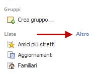 Se passi il mouse su Liste apparirà la voce Altro. Cliccandoci apparirà una finestra con le liste già create di default da Facebook, come Amici più stretti e Conoscenti. Queste liste sono create automaticamente in base a criteri come la vicinanza geografica, il posto di lavoro o l’appartenenza alla stessa famiglia.