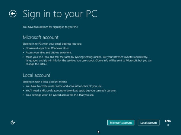 – Se ancora non hai un Live ID puoi comunque procedere nell’installazione e usare Windows 8, ma l’esperienza non sarà la stessa.