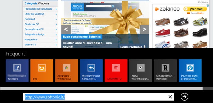 Altra novità del browser Microsoft è il suggerimento con i siti visitati di recente. Al momento di digitare un nuovo indirizzo nella barra di ricerca appariranno della piastrelle (come no!) colorate con le ultime pagine web visitate.