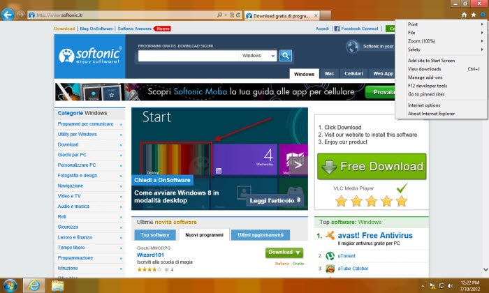 L’interfaccia Desktop di IE 10