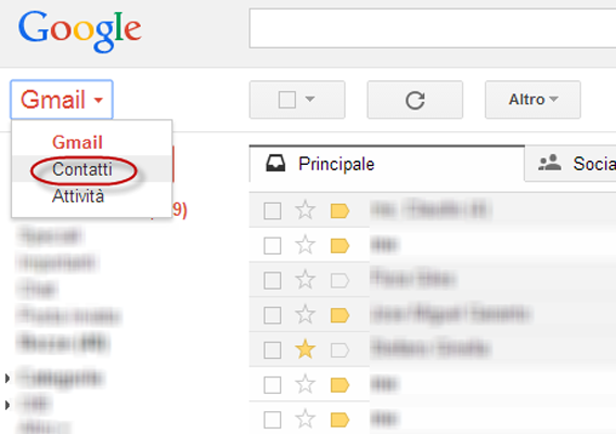 Entra in Gmail e apri il menu a tendina nella parte in alto a sinistra dello schermo. Clicca su Contatti.