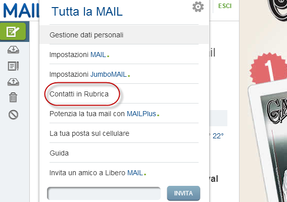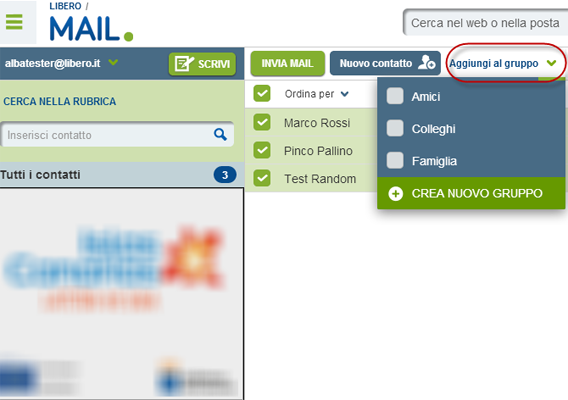 Ora devi avvisare tutti i tuoi amici del cambio di email. Torna in Libero ed entra nuovamente nella sezione Contatti in rubrica, quindi seleziona l’intera lista.
