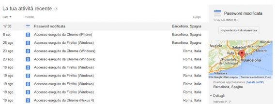 Vedremo una schermata che riassume gli accessi (compreso il tipo di dispositivo e la località) e le altre attività effettuate nelle ultime settimane. Se si notano attività insolite, è il caso di cambiare la password, anche con una certa fretta, e sceglierne una sicura.